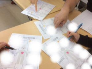一通り書き終えた後に、グループになってシェアしていきました。ツッコミどころ … たくさん出てきましたね~!質問されてハっと気付いていた場面がたくさんありました。