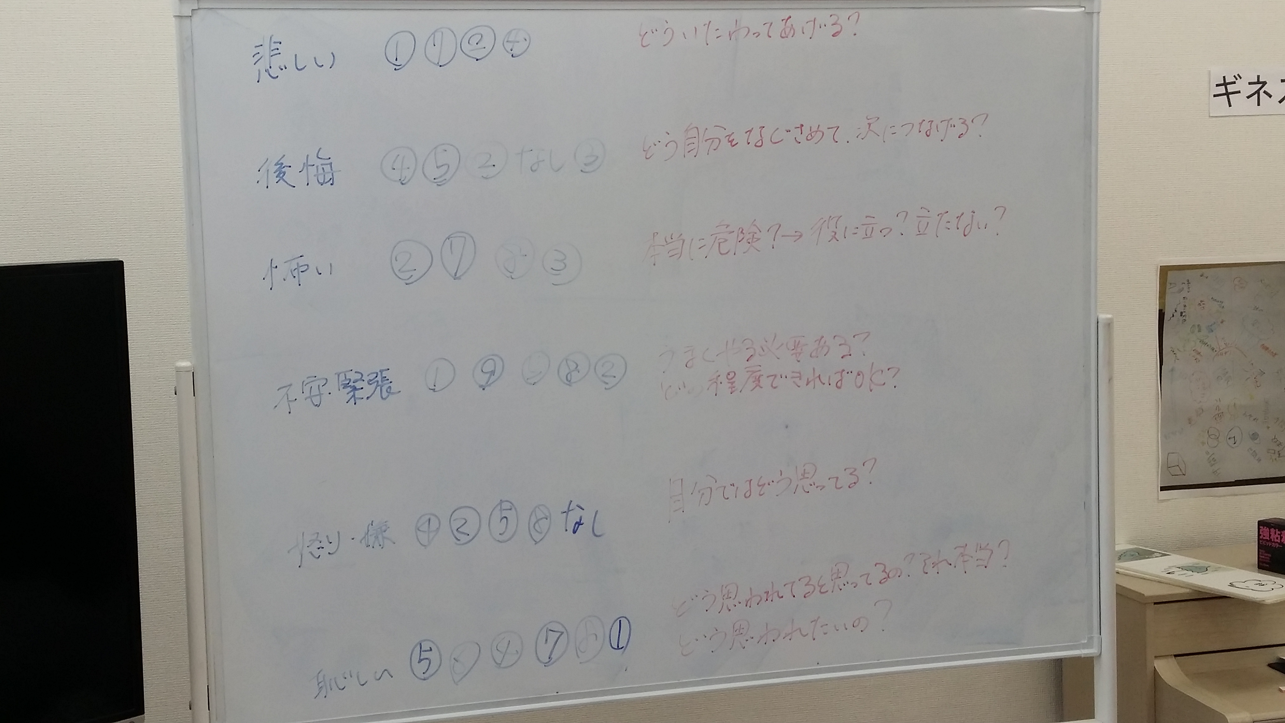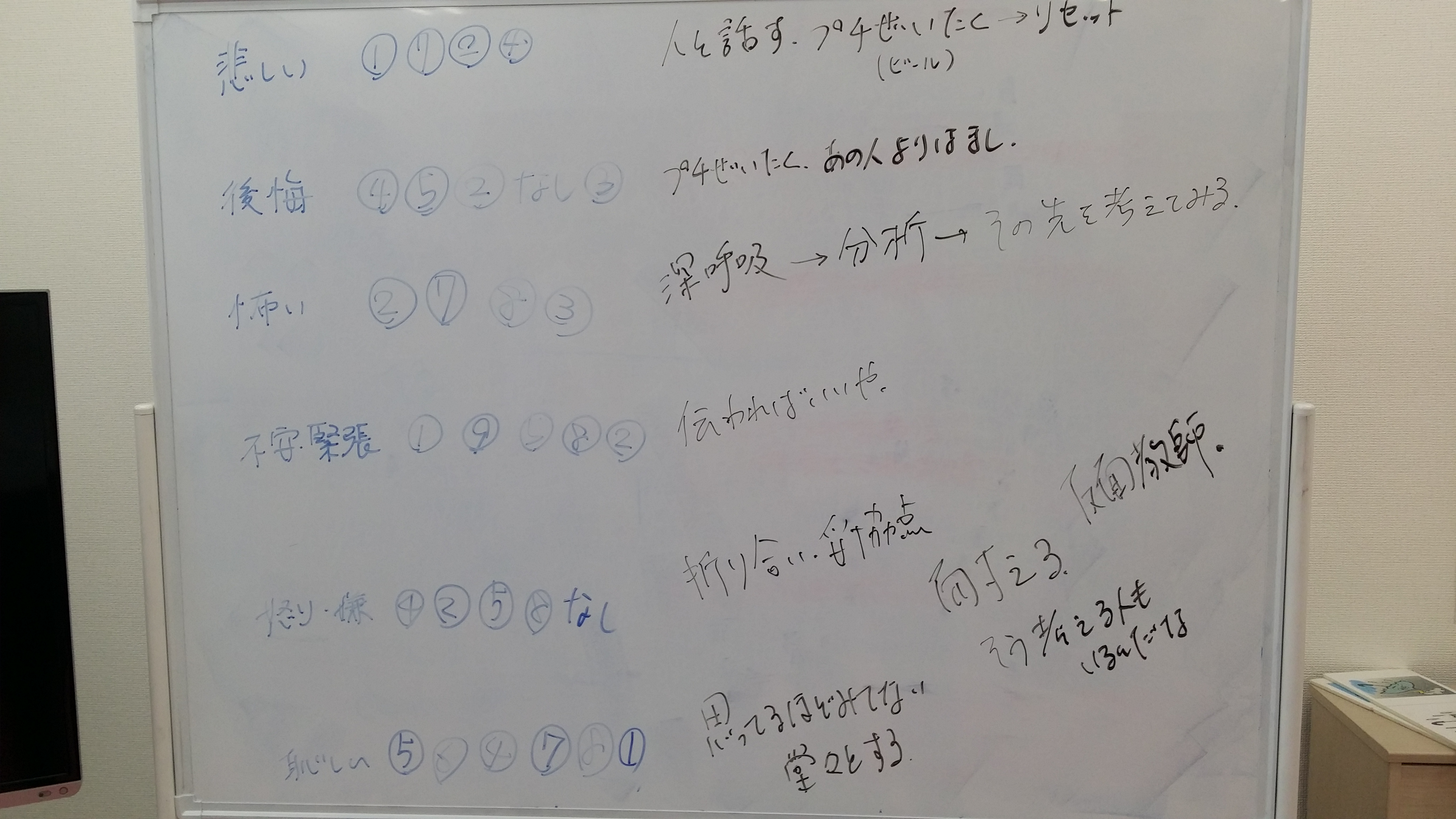 午後はSSTで「ダメだし(=叱られる、注意される、否定や批判をされる)の対処」について考えました。感情の意味と思考の癖を理解して、自分の気持ちに寄り添った対処をみなさんとディスカッション。