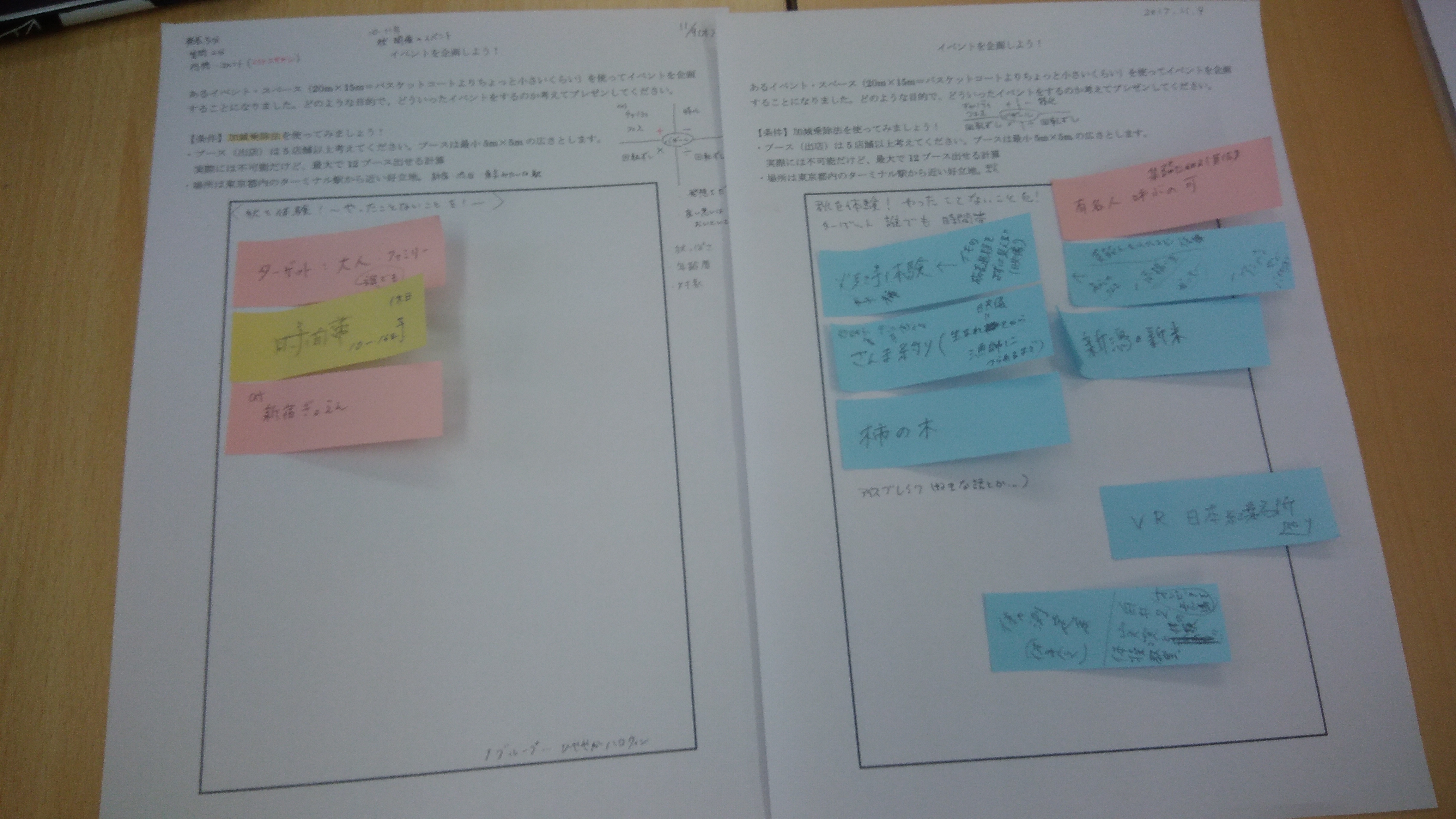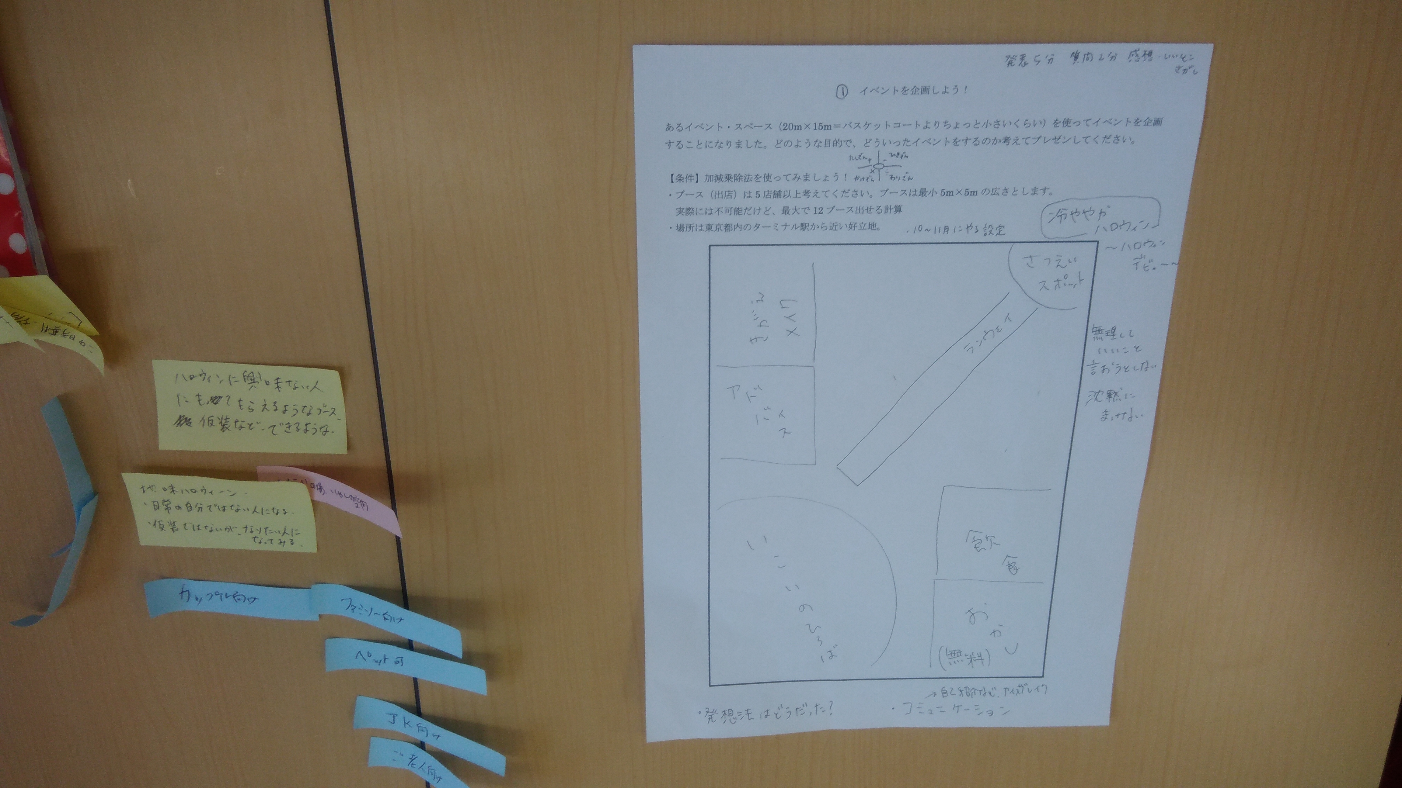 架空の設定ですが、20m×15mのイベント・スペースで行うイベントについて、企画立案をしてもらいました。