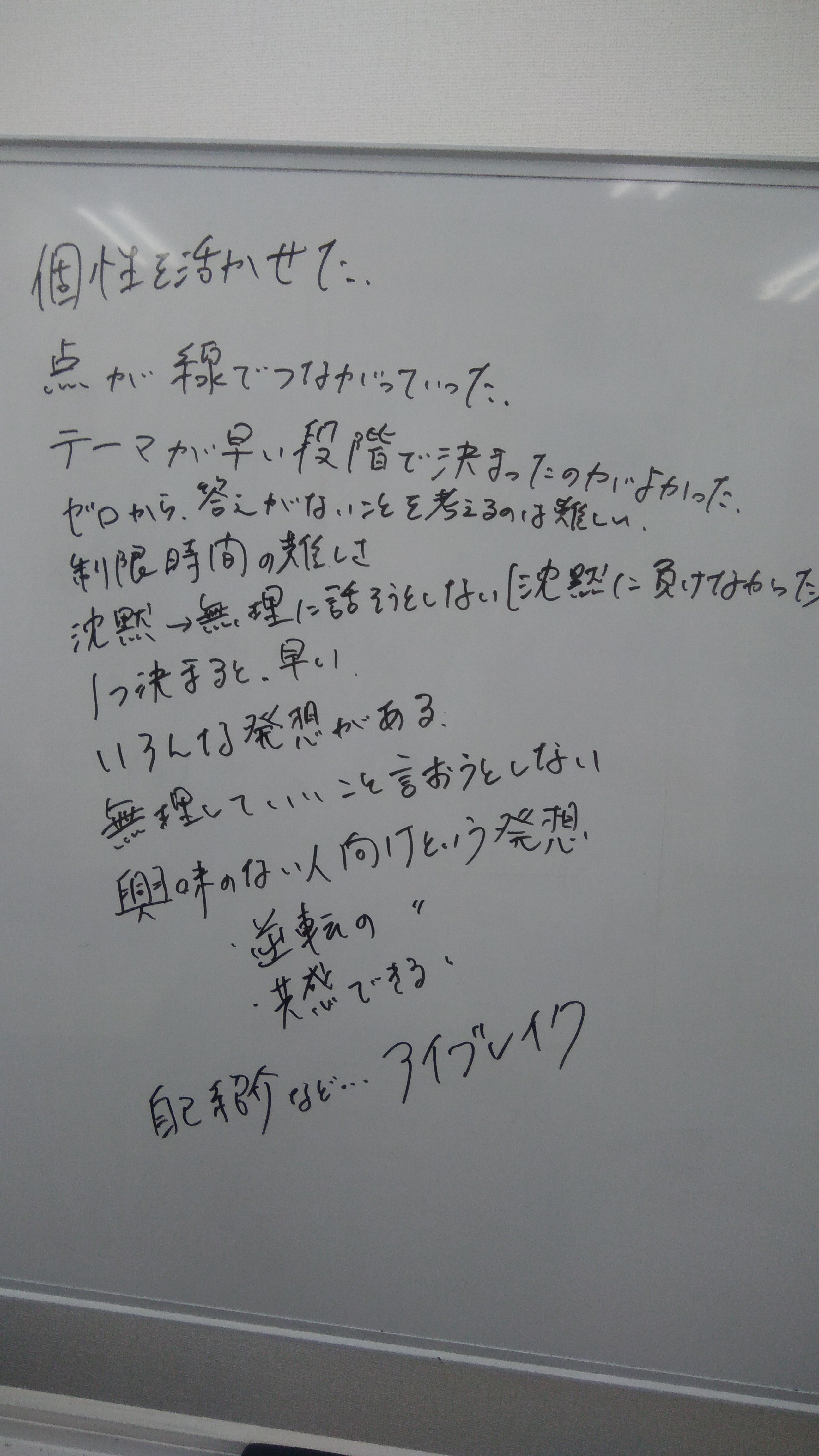 振り返りではコミュニケーションや発想法について、様々な気付きが生まれたようです。
