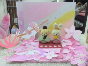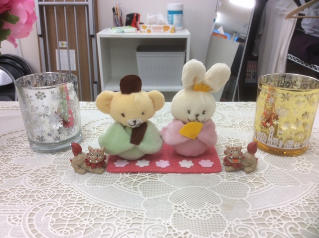 下駄箱の上で皆さんをお迎えしていたこのコ達の周りに*春と愛*を作ってみました♪