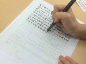 因みに、私自身が試しに写経をやってみた時に、「ええ!?イメージ通りに書けない!?」とびっくりしました。自分の書き方が自分の思考パターンとそっくりなことにも気づき、愕然としました。写経も1つのマインドフルネスなんだなぁ、と感じた次第です。今日はお二人の方が写経の世界にデビューされました。