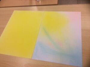 今日はまた、指先ではなく手の平で豪快に色を白紙に落とされた方も☆