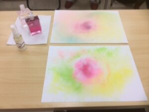 午後はアロマテラピーのルームスプレー作り&アートヒーリングを実施しました。